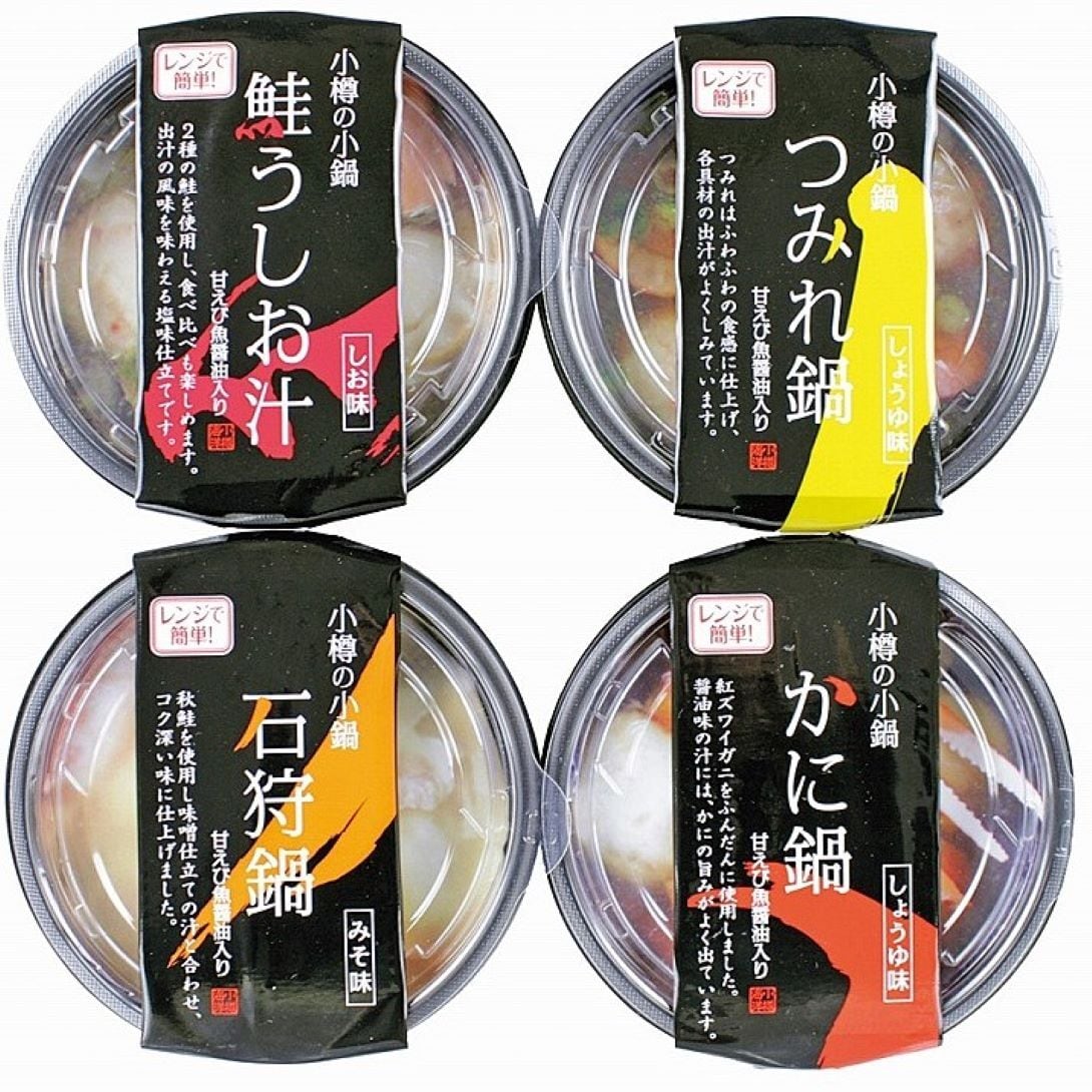 ・内容量:石狩鍋 /280g、 かに鍋 /280g、 鮭 うしお汁/280g 、つみれ汁 /280g 国産