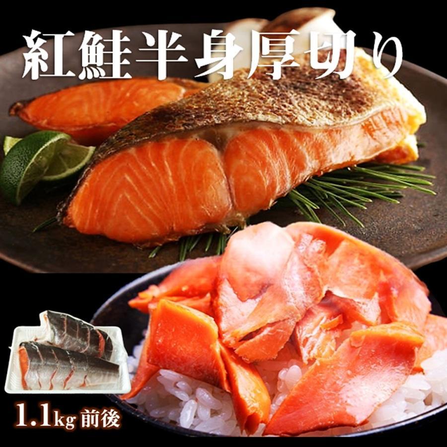 天然紅鮭半身1.1kg前後 特大で脂のり良し!天然の焼き用紅鮭甘塩