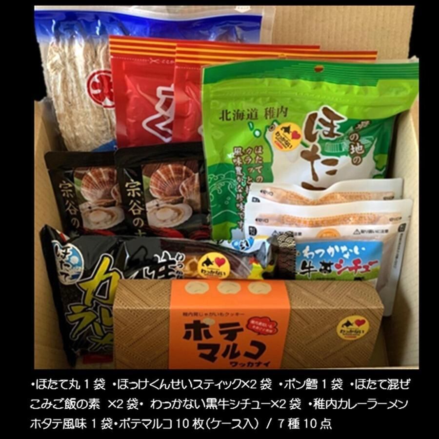 稚内を代表する商品の稚内ブランド応援セット7種類10品の詰め合わせ。