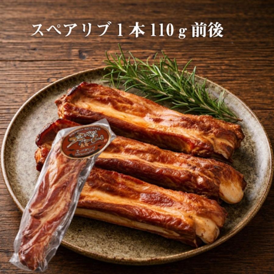スペアリブ1本110g前後 サロベツファームの手作り桜の木を燻した煙でスペアリブ作りを行っております。