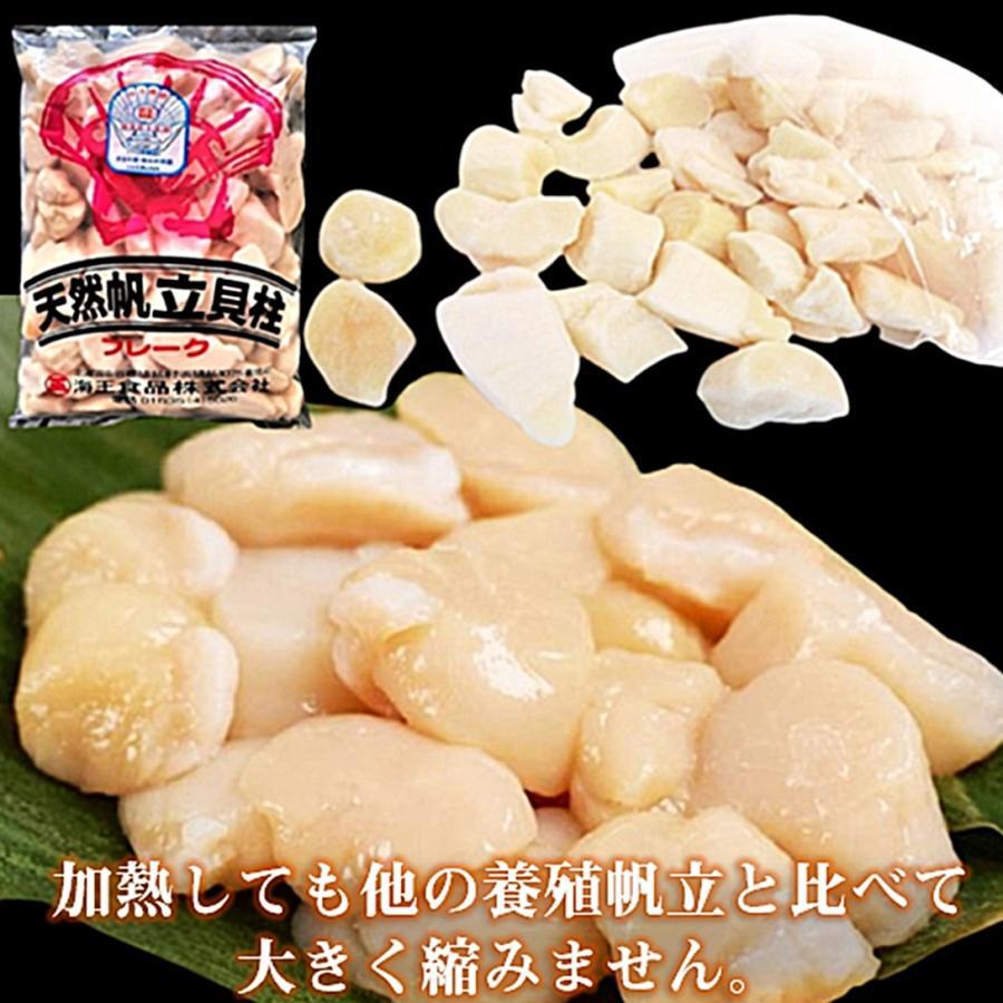 製造過程で、貝柱の変形、表面の大きな割れ、一部が欠けている貝柱を袋詰めした商品です。