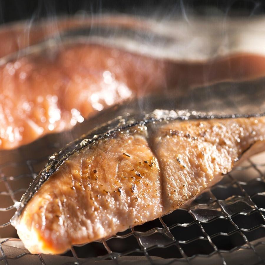 9月上旬から10月下旬にかけて、産卵の為に川を遡上する前に漁獲される鮭は身の質が良く、鮮度に脂がのっており新巻に適しています。切身を真空包装しお届けします。