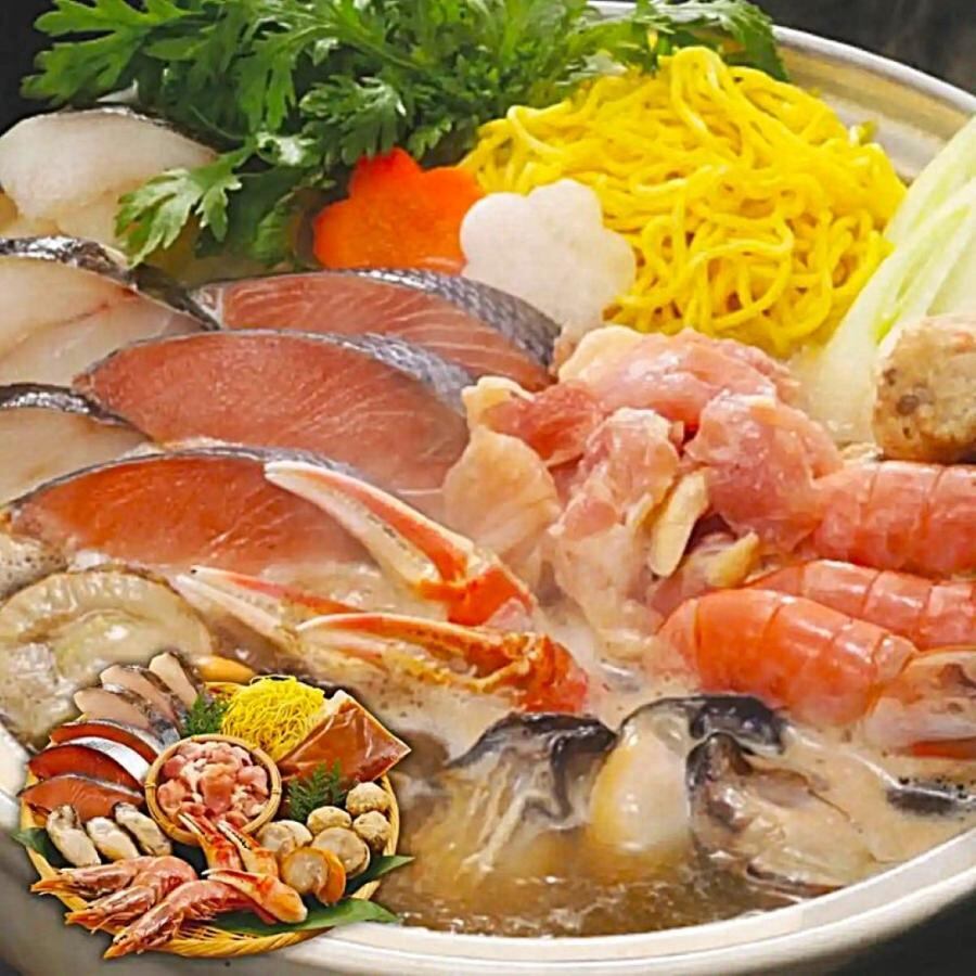 北海道産の魚を中心に肉と麺まで9種類の味をそろえた鍋具材セットです。 ※野菜は付いておりません。