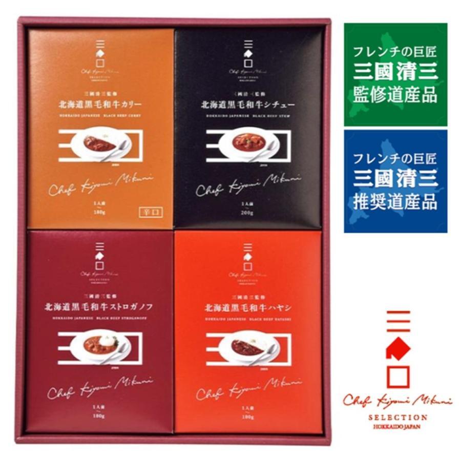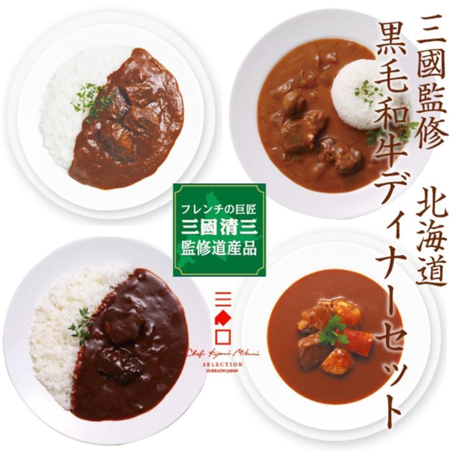 ・内容量:三國監修北海道黒毛和牛カリー・三國監修北海道黒毛和牛ストロガノフ・三國監修北海道黒毛和牛ハヤシ/各180g、三國監修北海道黒毛和牛シチュー/200g
