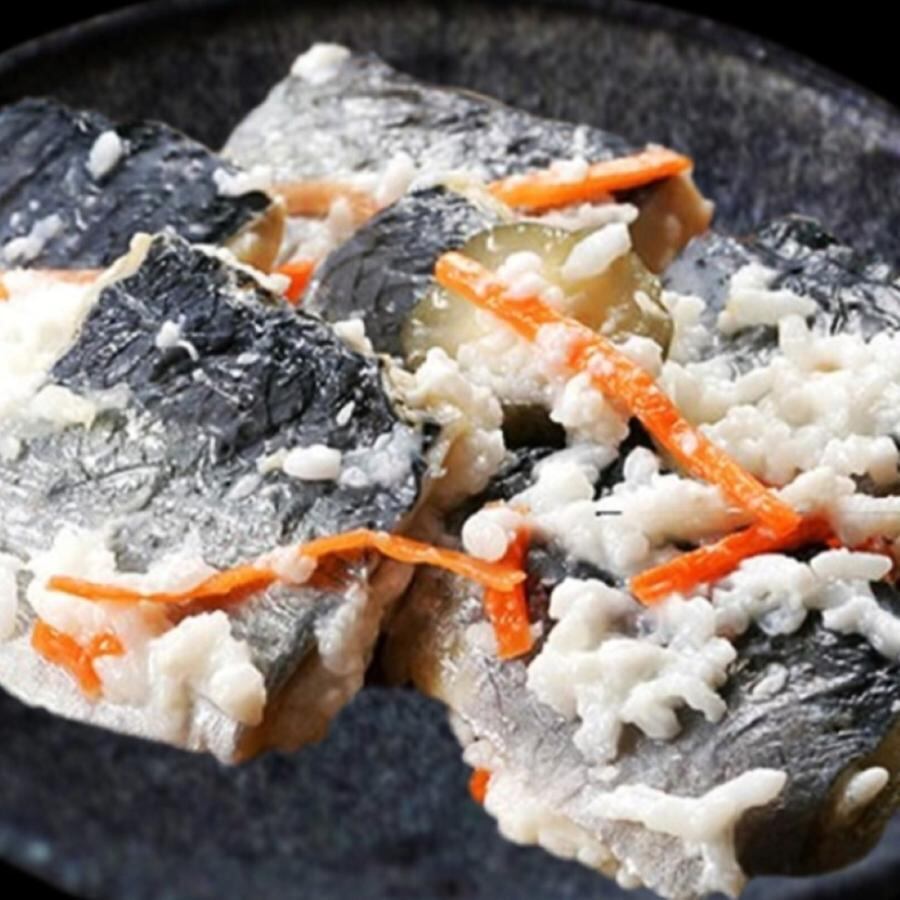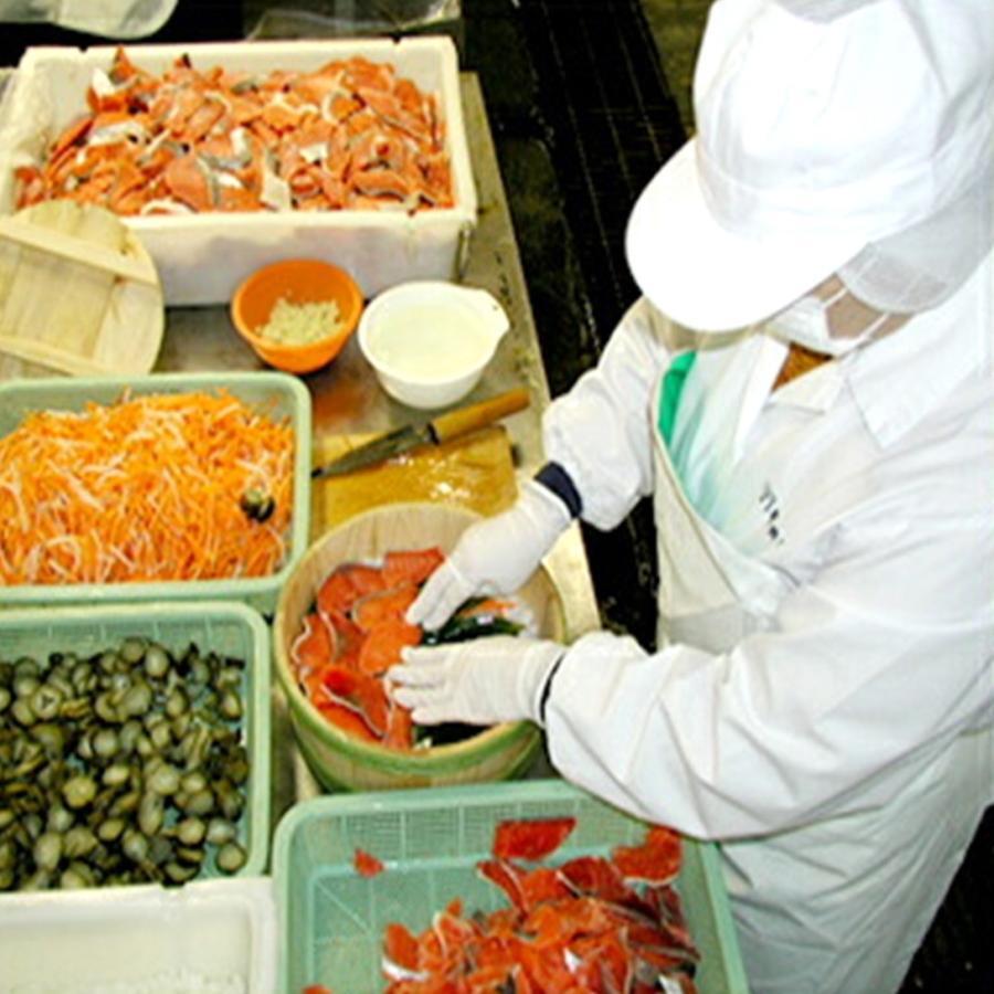 「飯寿司」は北海道を代表する伝統食品です。新鮮な魚を主原料に野菜と米・糀を加えてじっくりと乳酸発酵させた発酵食品で、その昔、北国に生きる人々が雪で閉ざされた冬期間に豊富な魚を使った美味しい保存食品が出来ないかと北国の知恵が生んだ食品です。魚は主に、鮭・にしん・ほっけなどで、キャベツ・大根・にんじんなどの野菜と一緒に漬け込みます。 新鮮な原料と高度な技術により製造された、かね丁印の「飯寿司」北国の味をご賞味ください。