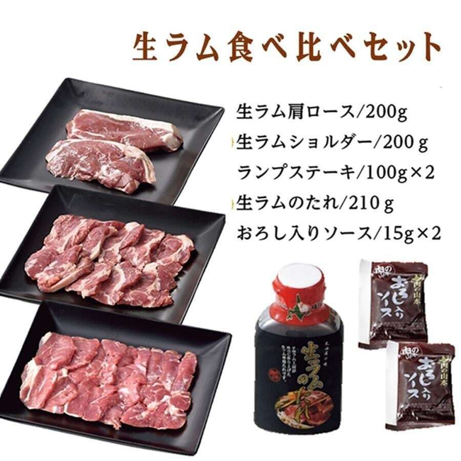 ・内容量:生ラム肩ロース/200g・生ラムショルダー/200g・ランプステーキ/100g×2・生ラムのたれ/210g・おろし入りソース/15g×2