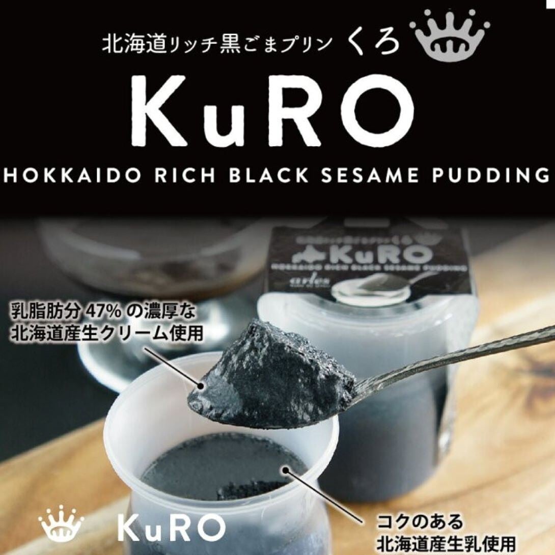 KuRO:北海道産生クリームと北海道産牛乳をベースに作られたリッチミルクプリンに純正黒ごまのペーストを加えた黒ごまプリン