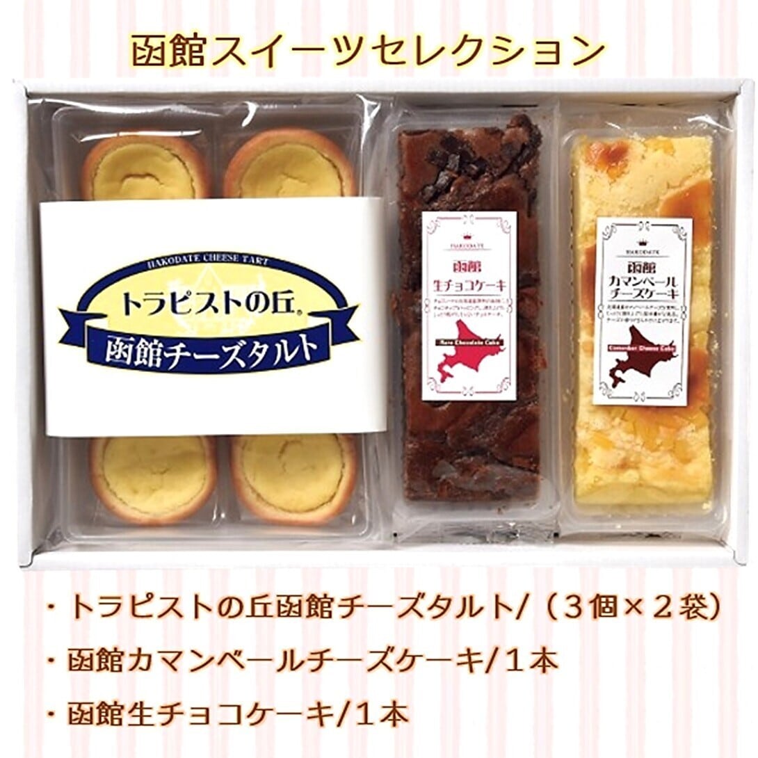 ・内容量:トラピストの丘函館チーズタルト/6個入、函館生チョコケーキ・函館カマンベールチーズケーキ/各1本