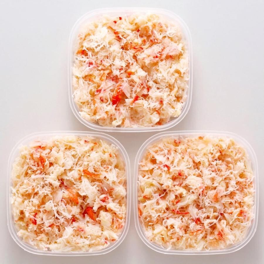 北海道産おおずわいがにを、塩ゆでしてほぐし身にしました。