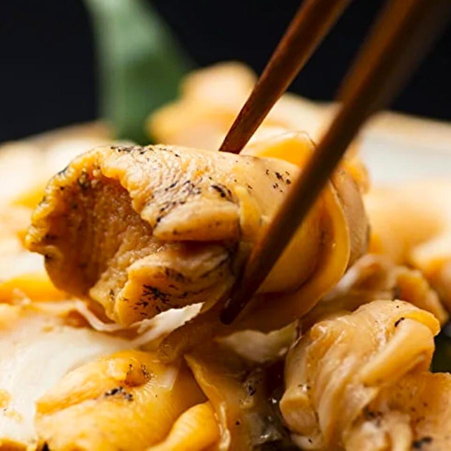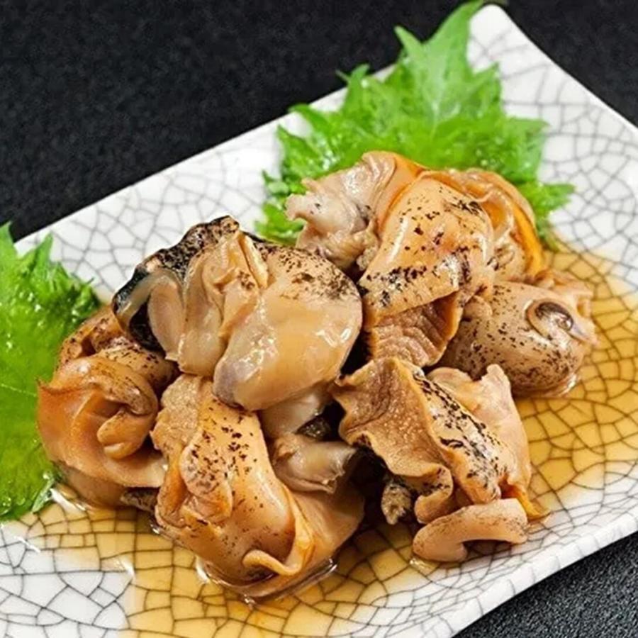 オホーツク海、知床で漁獲された越中(えっちゅう)バイツブの獲れたてを、使用しているため、贅沢な味わいと食感が楽しめます。また、低温調理により、柔らかく仕上げられたつぶ貝は、かつお醤油味のうまみがしっかり効いています。さらに、無添加仕上げなので、安心して召し上がっていただけます。やわらかく火を入れても硬くならない、最近話題の知る人ぞ知るつぶ貝です。