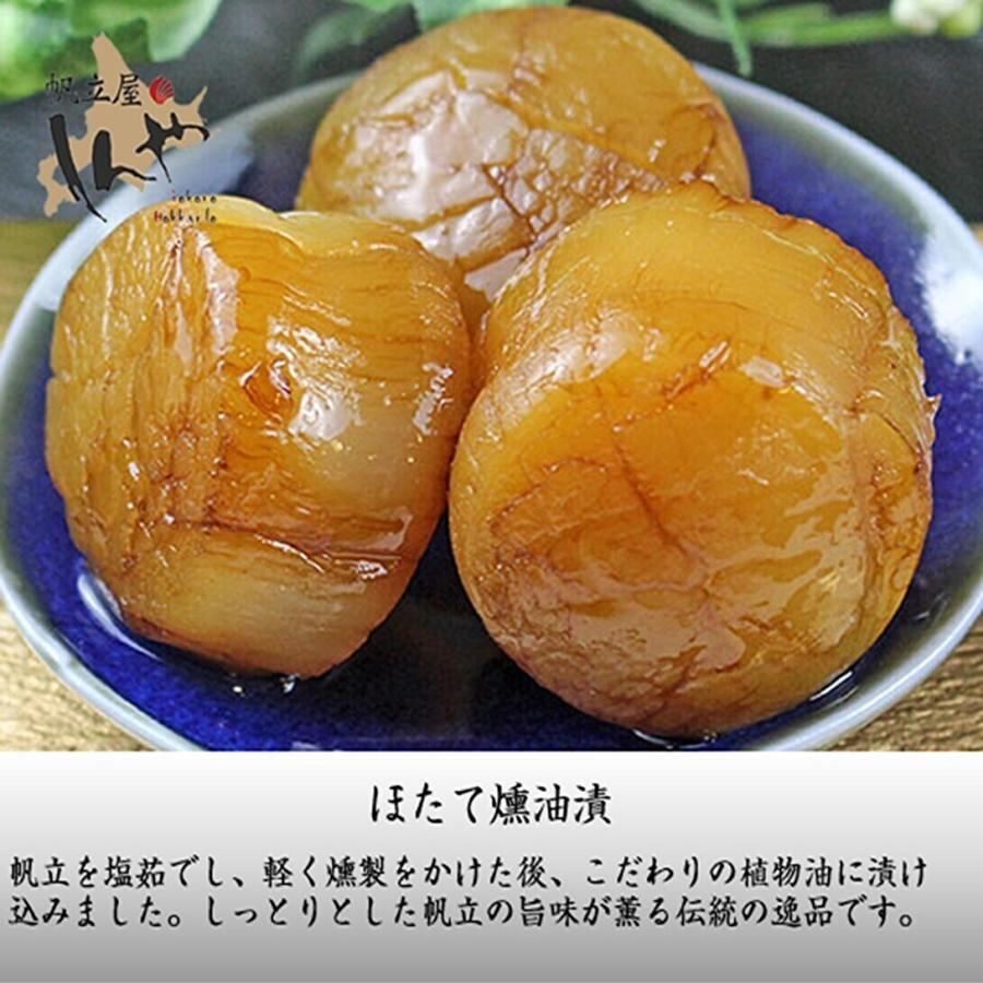 滋味豊かな帆立を上質の植物油に漬けた「帆立燻油漬」や、柔らかな食感の「ソフト貝柱」、帆立の旨みが存分に味わえる詰合せです。