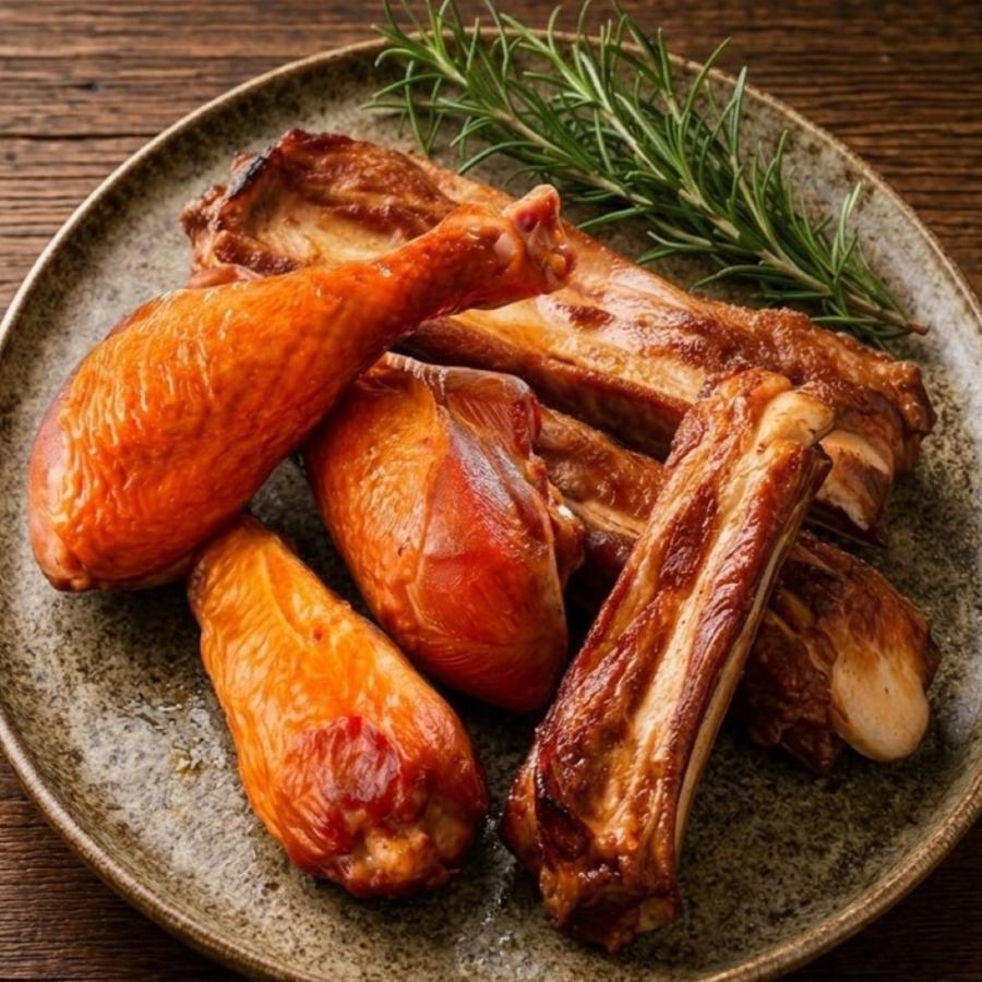 スモークチキンレッグ3本ポークスペアリブ3本 計6本セット 手造りサロベツファーム