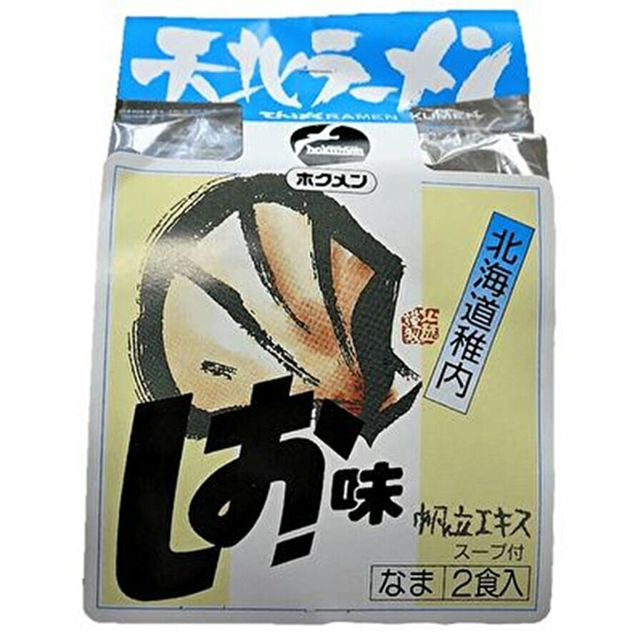 天北ラーメンの帆立しお味。こだわりは製麺会社ホクメンの技術の結晶, グルテン質の強い ラーメン専用粉を吟味し、コシの強さと滑らかさを併せ持った定温熟成麺と、 さっぱりと した中にもコクがあるスープが自慢の一品です。