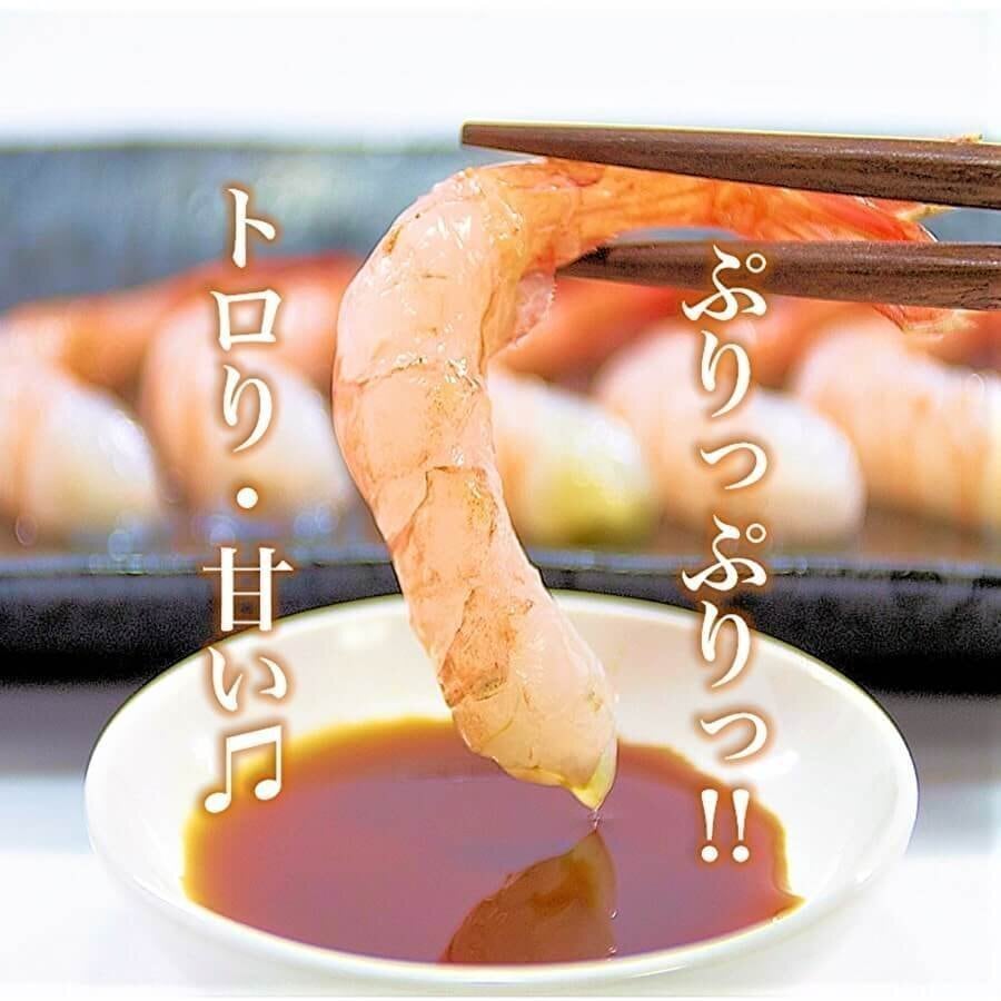 獲れたての甘えびを船内で急速冷凍した極上品です。その名の通り、甘味が自慢のエビで、お刺身やお寿司に良く合います。頭の中のエビ味噌も楽しみましょう!