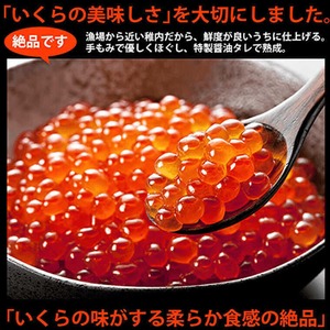 完熟いくらだけを選び出し、稚内のいくら加工の老舗が丁寧に手造り。特製白醤油で仕上げた絶品いくらです。口の中に皮が残らない柔らかないくらは最高ランク品の証。使いやすい100グラム瓶3本でのお届けになります。