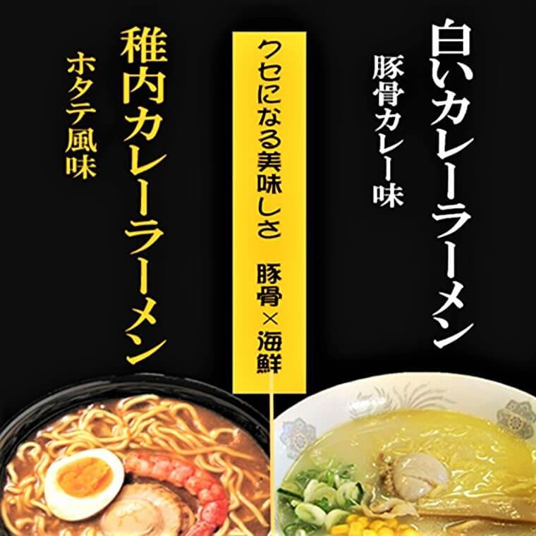 稚内ご当地カレーラーメン2種(稚内カレーラーメンほたて風味 ・白いカレーラーメン豚骨味)