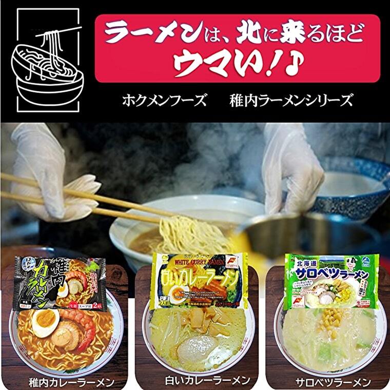 稚内のホクメンフーズが作っている稚内ラーメンシリーズは、最北地ならではの個性的なスープが魅力です。宗谷の澄んだ海水を乾かしたミネラル豊富な宗谷の塩をスープの隠し味に使用。豚の背脂を練り込んだコクがあって切れのいいスープと、コシあり、つやあり、延びの遅いしっかりした麺との相性は抜群です。