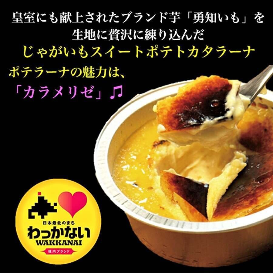 野菜づくりの北限を超えている稚内。それでも、ブランドじゃがいも「勇知いも」は寒さに耐えて、育っています。その素朴なじゃがいもをプリン仕立てのカタラーナに。地元・豊富町産の無塩バター、牛乳、生クリームを贅沢に使用しています。