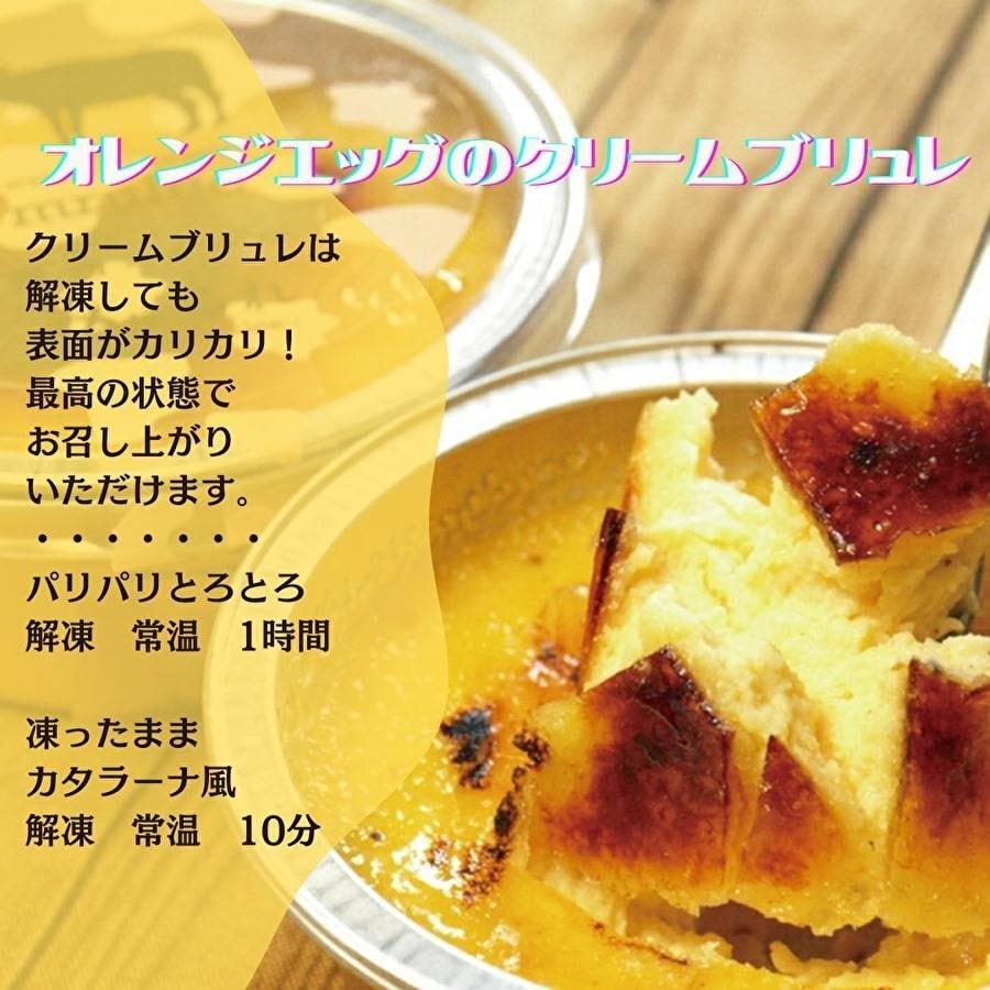 解凍時間10分程度でカタラーナ(焼きプリンアイス)風で、解凍時間1時間程度でクレームブリュレとしてお召し上がりいただけます。