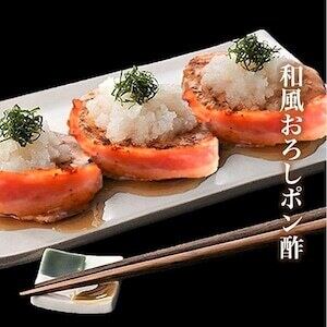 稚内(宗谷)産の新鮮な鮭の身を粗ほぐしにして、デンマーク産の特製ベーコンで巻き込んでギュッと美味しさを凝縮させた海鮮ステーキです。