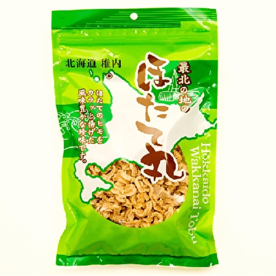 宗谷産天然帆立のミミをカラッと揚げた風味豊かな珍味。